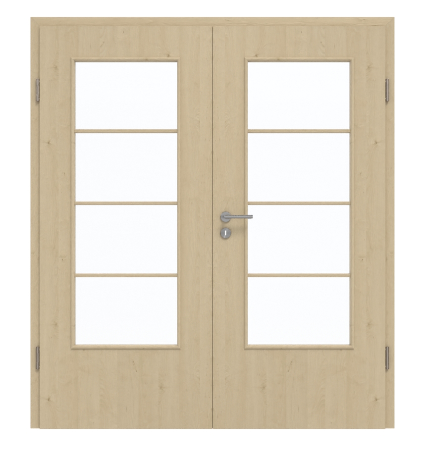 Dzięki dużym przeszkleniom, podkreślonym pionowymi szprosami, drzwi zyskują nowoczesny wygląd. Jasny beżowy kolor i drobne sęki nadają ton dekorowi Natura Ahorn. Warstwa wierzchnia wyróżnia się dodatkowo komfortem pielęgnacji w codziennym użytkowaniu oraz wysoką odpornością na obciążenia mechaniczne.