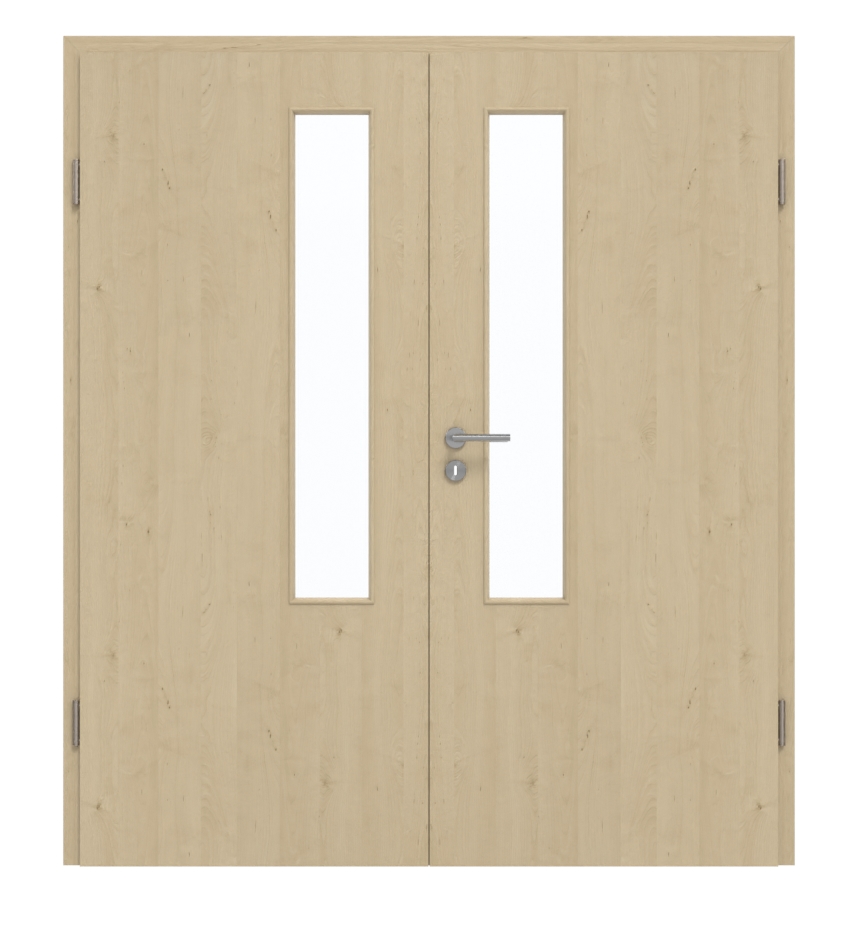 Oba skrzydła drzwi mają rdzeń z płyty wiórowej. Model ten odpowiada klasie obciążenia M , dzięki czemu nadaje się zarówno do pomieszczeń mieszkalnych, jak i biurowych. Cena obejmuje skrzydła ruchome i stałe, ościeżnicę, zawiasy oraz zamek z kluczem.