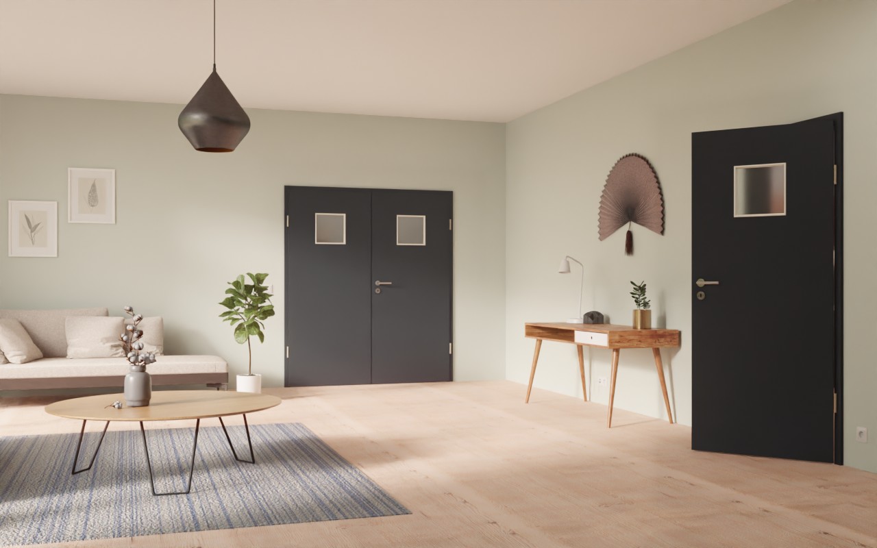 Stylowe drzwi podwójne z wytrzymałą okładziną HPL: