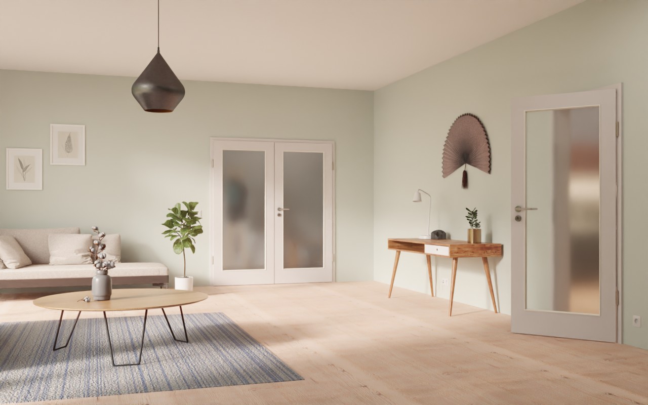 Estetyczne, dwuskrzydłowe drzwi wewnętrzne z wytrzymałą powierzchnią HPL: