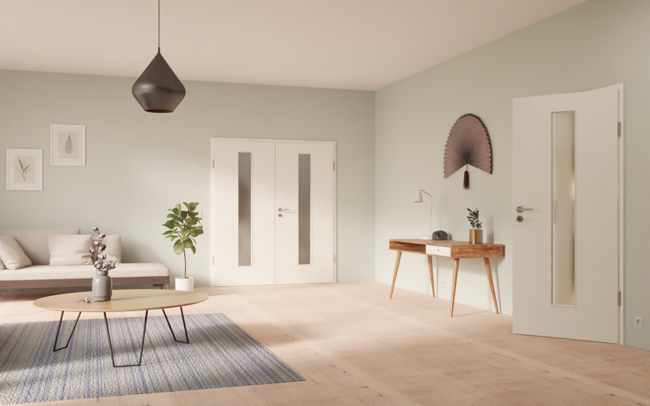 Estetyczne drzwi skrzydłowe z łatwą do czyszczenia powierzchnią HPL: