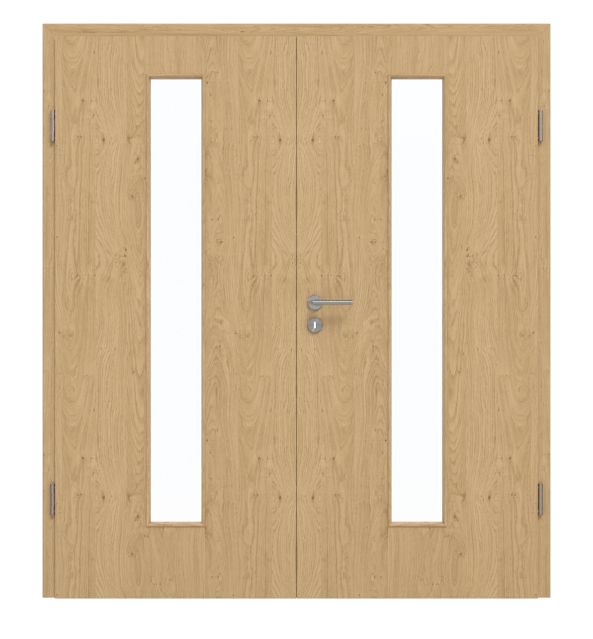 Rdzeń drzwi podwójnych jest wykonany z pełnej płyty wiórowej. Została przetestowana w grupie obciążenia M i dlatego może być stosowana zarówno w budynkach mieszkalnych, jak i biurowych. Podana cena obejmuje oba skrzydła drzwiowe, odpowiednią ościeżnicę, zamek bębenkowy oraz zawiasy.