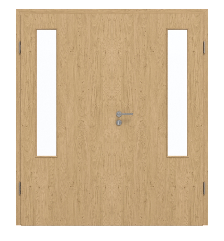 Dzięki rdzeniowi z pełnej płyty wiórowej drzwi dwuskrzydłowe nadają się zarówno do pomieszczeń prywatnych, jak i biurowych. Produkt został przetestowany w grupie obciążeniowej M. Ościeżnica, zawiasy i zamek z kluczem są już wliczone w cenę.