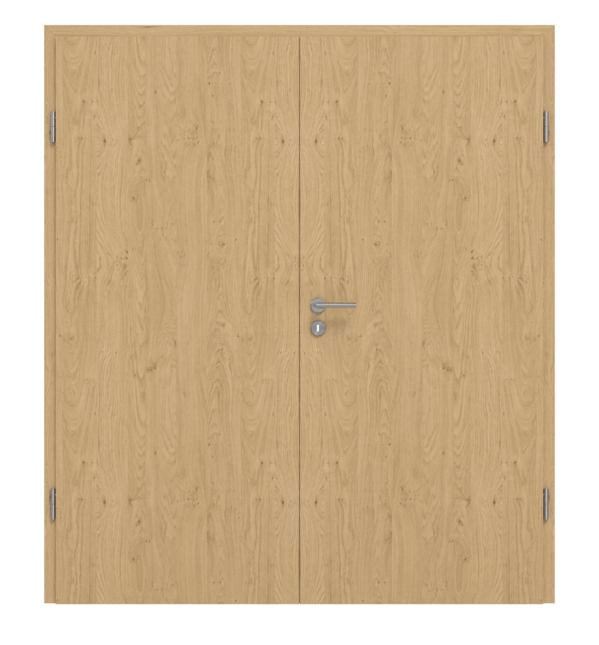Drzwi dwuskrzydłowe, przetestowane w grupie obciążenia M, nadają się zarówno do pomieszczeń prywatnych, jak i biurowych. Zasadniczo składa się ona z płyt wiórowych z rurkami lub płyt wiórowych pełnych. Cena obejmuje skrzydła czynne i bierne, ościeżnicę, zawiasy i zamek na klucz piórowy.