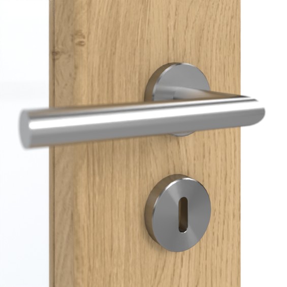 Pomieszczenia są jasne dzięki prostokątnym wycięciom na szyby, które stanowią większą część skrzydeł drzwiowych. Ozdobiony realistycznym usłojeniem dekor drewna HPL Authentic Asteiche DA zapewnia przytulną atmosferę. Ten odporny na uderzenia i zarysowania laminat jest łatwy w czyszczeniu.