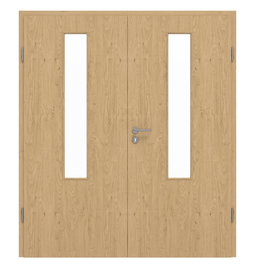 Dzięki zaliczeniu do klasy obciążenia M te drzwi dwuskrzydłowe nadają się zarówno do pomieszczeń prywatnych, jak i biurowych. Ich rdzeń składa się z pełnej płyty wiórowej. Cena obejmuje skrzydła ruchome i stałe, ościeżnicę, zawiasy oraz zamek z kluczem.
