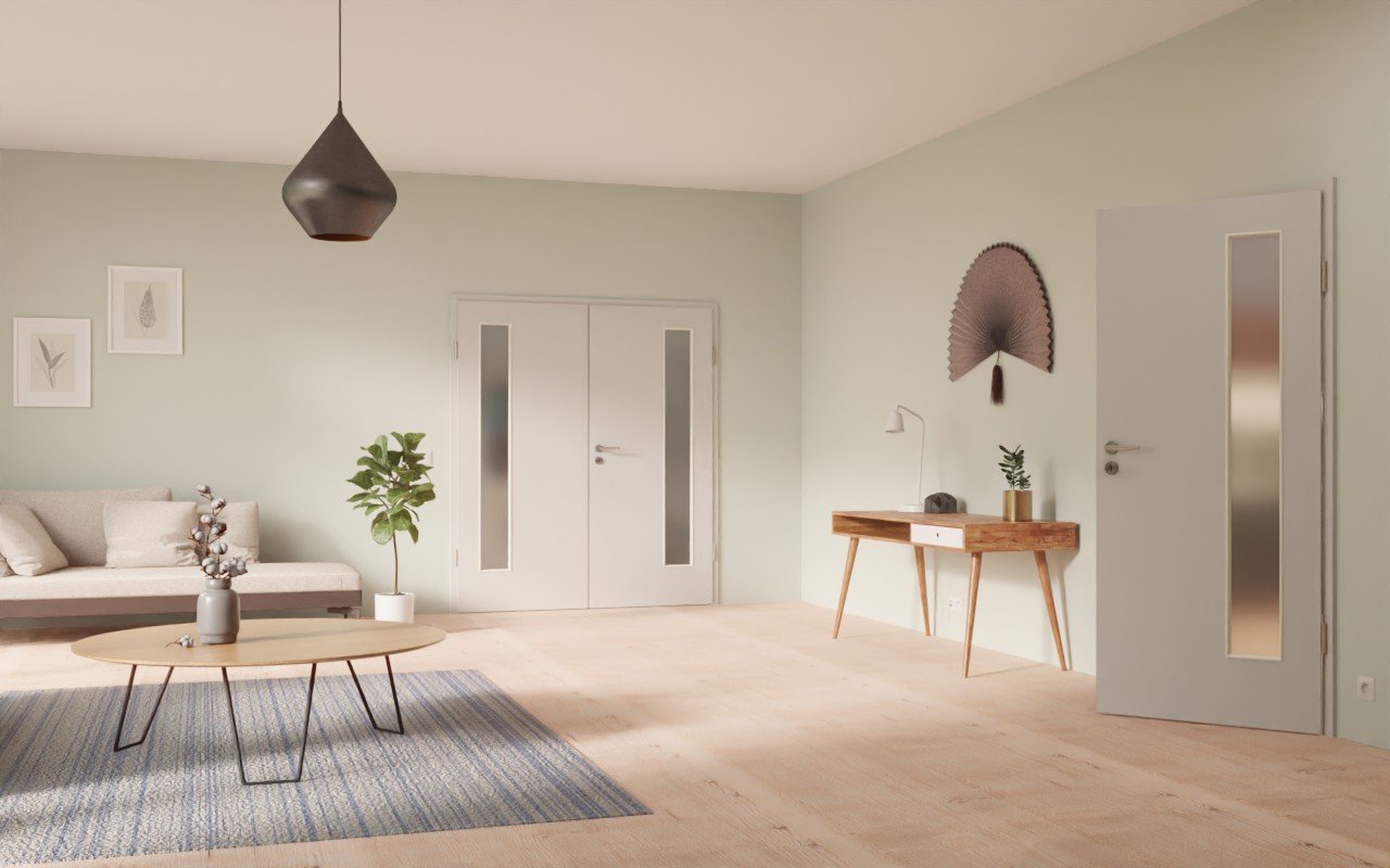 Stylowe podwójne drzwi wewnętrzne z łatwą do czyszczenia powierzchnią HPL: