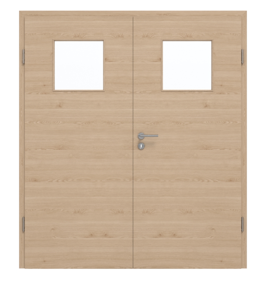 Dzięki klasyfikacji do grupy obciążenia M drzwi dwuskrzydłowe nadają się zarówno do pomieszczeń prywatnych, jak i biurowych. Ich warstwa środkowa jest wykonana z pełnej płyty wiórowej. Podana cena obejmuje oba skrzydła drzwiowe, pasującą ościeżnicę, zamek na klucz oraz zawiasy.