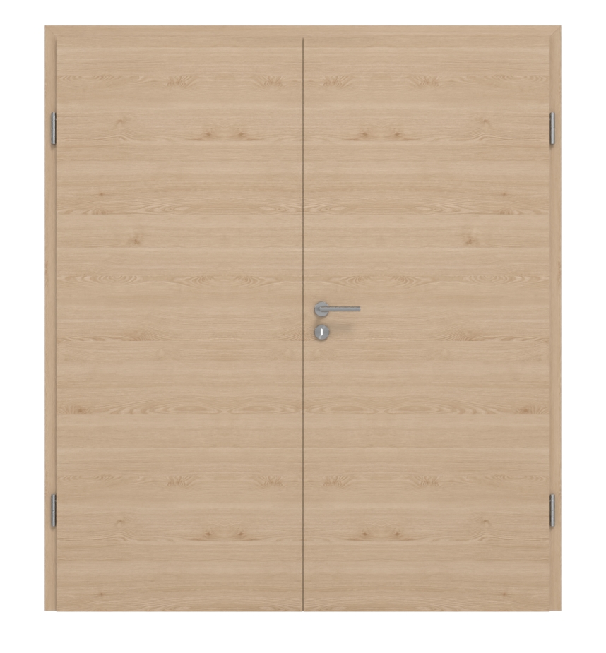 Dzięki warstwie środkowej wykonanej do wyboru z płyt wiórowych lub płyt pełnych te dwuskrzydłowe drzwi doskonale nadają się zarówno do pomieszczeń prywatnych, jak i biurowych. Produkt został przetestowany w grupie obciążeniowej M . W cenie zawarte są nie tylko oba skrzydła drzwiowe, ale także ościeżnica, zawiasy oraz zamek z kluczem.