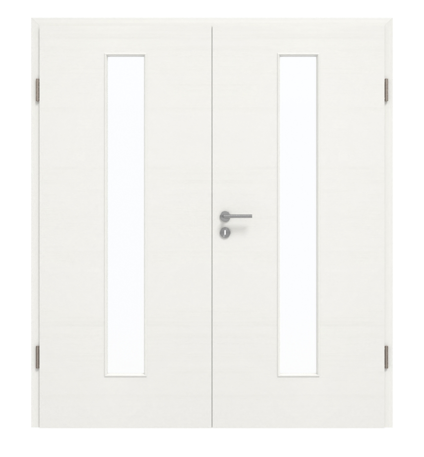 Nowoczesny duet do dużych pomieszczeń: Drzwi dwuskrzydłowe o powierzchni Quer Authentic Bianco firmy Garant ujmują zachęcającym wyglądem.