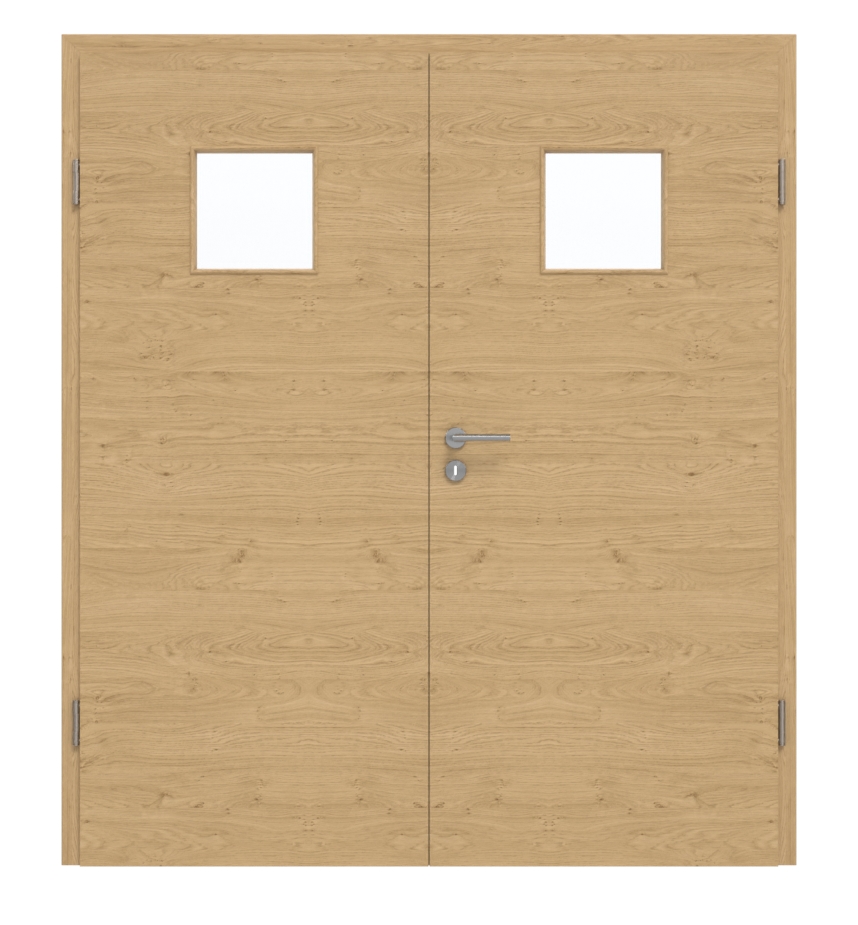Drzwi dwuskrzydłowe są produkowane z rdzeniem z pełnej płyty wiórowej. Dzięki temu spełnia wymagania grupy obciążenia M i może być stosowana zarówno w pomieszczeniach prywatnych, jak i biurowych. Podana cena obejmuje oba skrzydła drzwiowe, pasującą ościeżnicę, zamek na klucz oraz zawiasy.