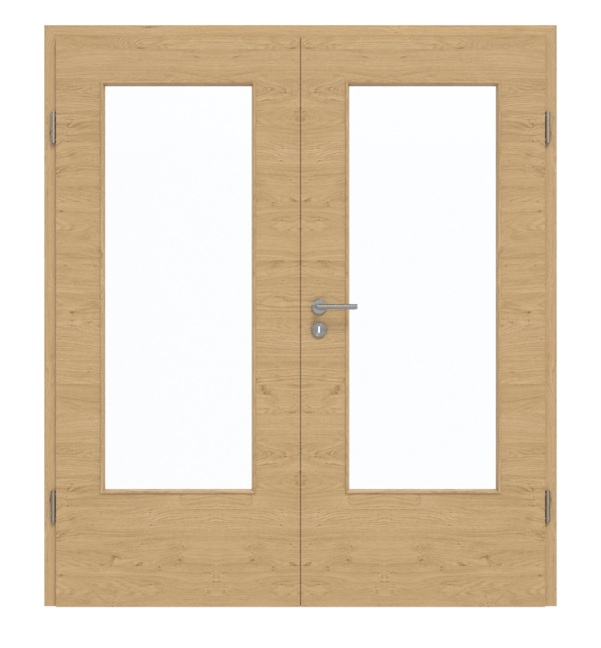 Te dwuskrzydłowe drzwi pokojowe są wykonane z warstwą środkową z litej płyty wiórowej. Dzięki temu spełnia wymagania klasy użytkowania M i nadaje się zarówno do użytku w pomieszczeniach prywatnych, jak i biurowych. Ościeżnica, zawiasy i zamek z kluczem są już wliczone w cenę.
