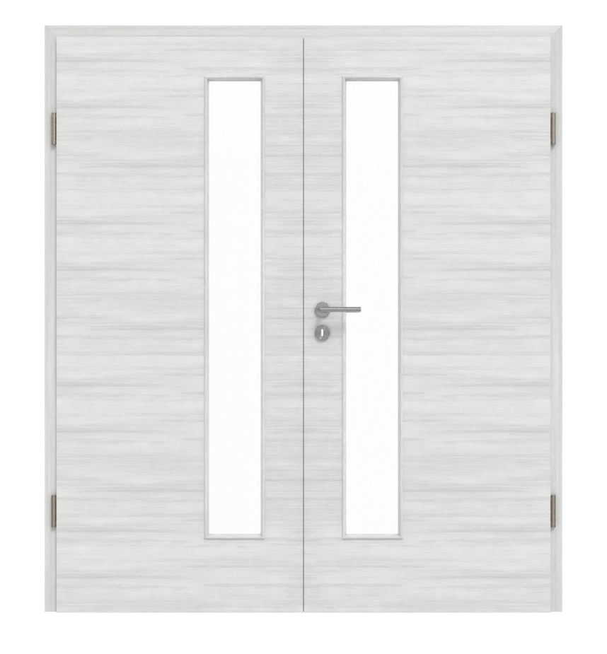 Dwuskrzydłowe drzwi pokojowe są produkowane z rdzeniem z płyty wiórowej pełnej. Dzięki temu spełnia wymagania grupy obciążenia M i może być używany zarówno w pomieszczeniach prywatnych, jak i biurowych. Oprócz dwóch skrzydeł drzwiowych cena obejmuje również ościeżnicę, zawiasy i zamek na klucz piórowy.