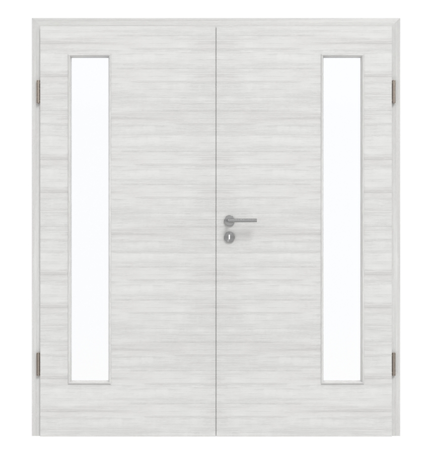 Dwuskrzydłowe drzwi pokojowe są produkowane z rdzeniem z płyty wiórowej pełnej. Dzięki temu spełnia wymagania grupy obciążenia M i może być używany zarówno w pomieszczeniach prywatnych, jak i biurowych. Oprócz dwóch skrzydeł drzwiowych cena obejmuje również ościeżnicę, zawiasy i zamek na klucz piórowy.