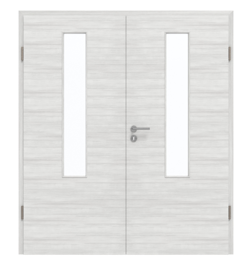 Drzwi dwuskrzydłowe nadają się zarówno do pomieszczeń prywatnych, jak i biurowych. Dzięki rdzeniowi z płyty wiórowej pełnej spełniają wymagania grupy obciążenia M. Cena obejmuje skrzydło czynne i bierne, ościeżnicę, zawiasy i zamek na klucz piórowy.