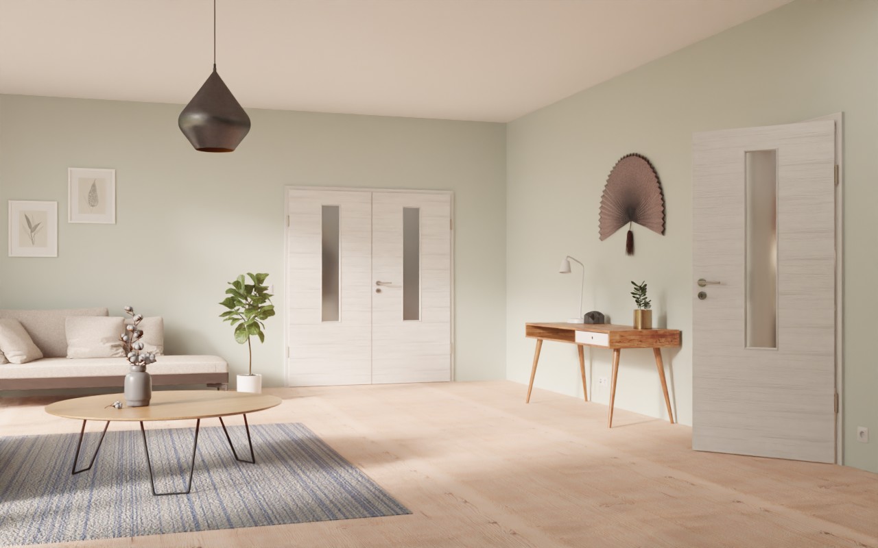 Z doskonałym przeszkleniem: Drzwi dwuskrzydłowe Quer Authentic Grigio firmy Garant zachwycają funkcjonalnością i stylem.