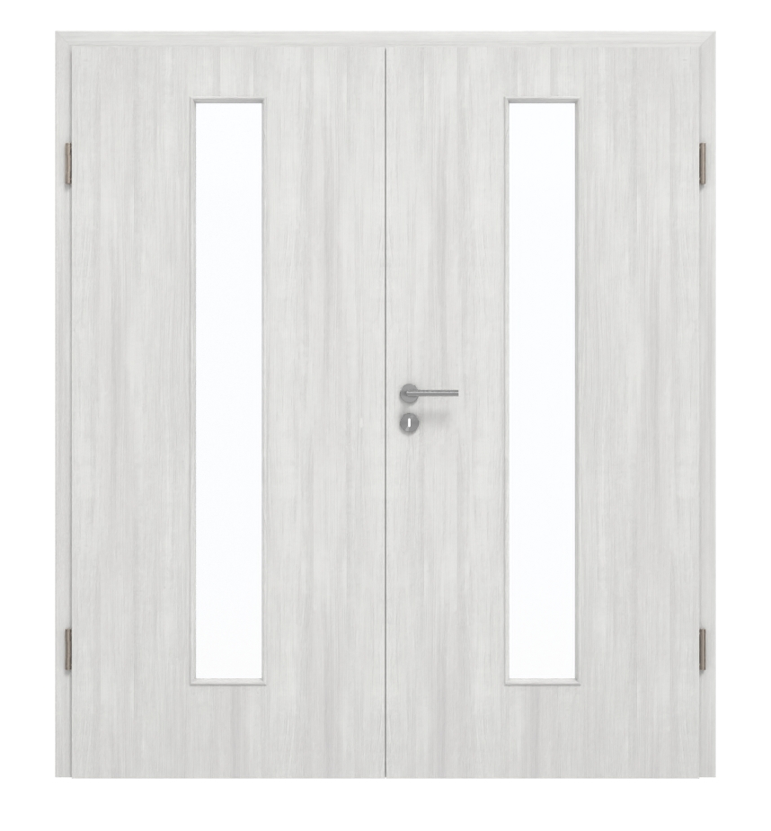 Testowane w grupie obciążeniowej M, drzwi podwójne mogą być stosowane zarówno w pomieszczeniach prywatnych, jak i biurowych. Ich rdzeń składa się z pełnej płyty wiórowej. W cenie zawarte są oprócz dwóch skrzydeł drzwiowych także ościeżnica, zamek i zawiasy.