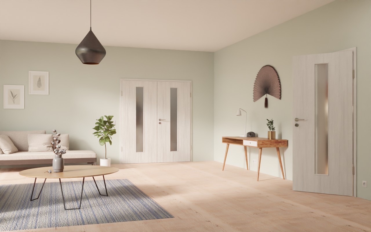 Na skrzydłach drzwi znajduje się pośrodku wąski przeszklenie. Dekor CPL Authentic Grigio DA prezentuje się z subtelnym, podłużnym usłojeniem i delikatnymi odcieniami jako nowoczesny wygląd drewna w jasnoszarym kolorze. Wyjątkowo odporna jest warstwa wierzchnia na ścieranie i uderzenia. Ponadto jest odporna na światło i łatwa do czyszczenia.