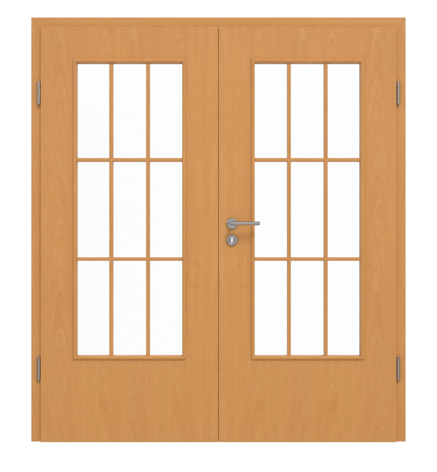 Dzięki przynależności do grupy obciążeniowej M podwójne drzwi nadają się zarówno do pomieszczeń prywatnych, jak i biurowych. Ich rdzeń wykonany jest z pełnego wióru. Cena obejmuje oba skrzydła drzwi, odpowiednią ościeżnicę, zawiasy oraz zamek z kluczem.