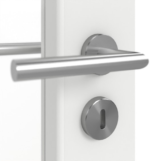 Oba skrzydła drzwi mają warstwę środkową z litej płyty wiórowej. Model został przetestowany w grupie obciążenia M i dlatego może być stosowany zarówno w pomieszczeniach mieszkalnych, jak i biurowych. Oprócz skrzydła ruchomego i stałego w cenie zawarte są również ościeżnica, zawiasy oraz zamek z kluczem.