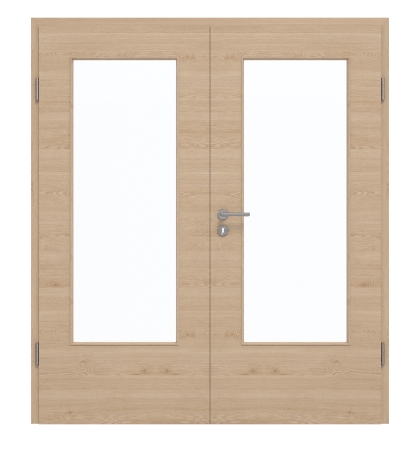 Te dwuskrzydłowe drzwi doskonale nadają się zarówno do pomieszczeń prywatnych, jak i biurowych. Posiada warstwę środkową z płyty wiórowej pełnej i została przetestowana w klasie obciążenia M. Oprócz skrzydła ruchomego i stałego w zestawie znajduje się również ościeżnica, zamek z kluczem oraz zawiasy.