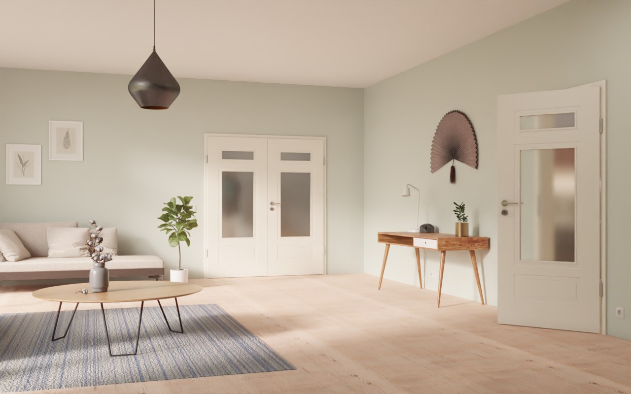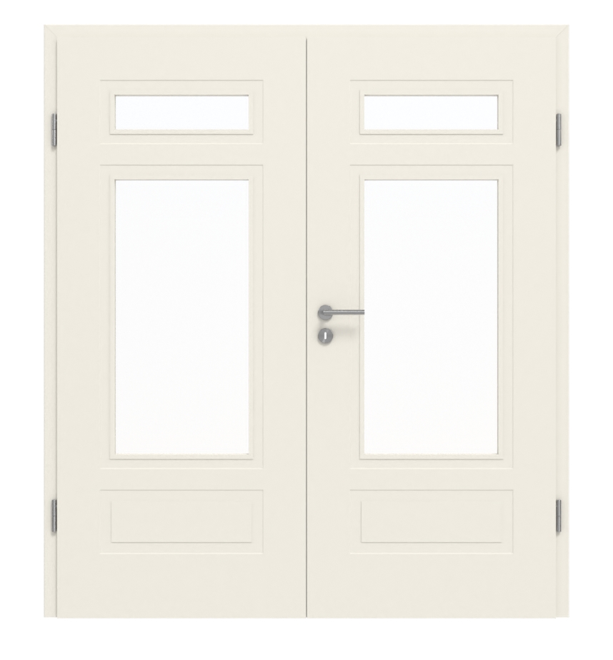 Zrównoważony duet drzwi wewnętrznych w sprawdzonej białej lakierze z dołączonym w cenie ościeżnicą: