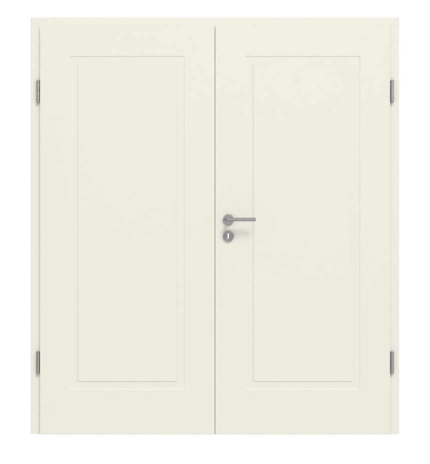 W obu skrzydłach drzwiowych wyfrezowano po jednym dużym kasetonie profilowanym. Jedwabiście matowy biały lakier w kolorze RAL 9010 lub RAL 9016 jest odporny na zarysowania i ścieranie oraz łatwy do czyszczenia.