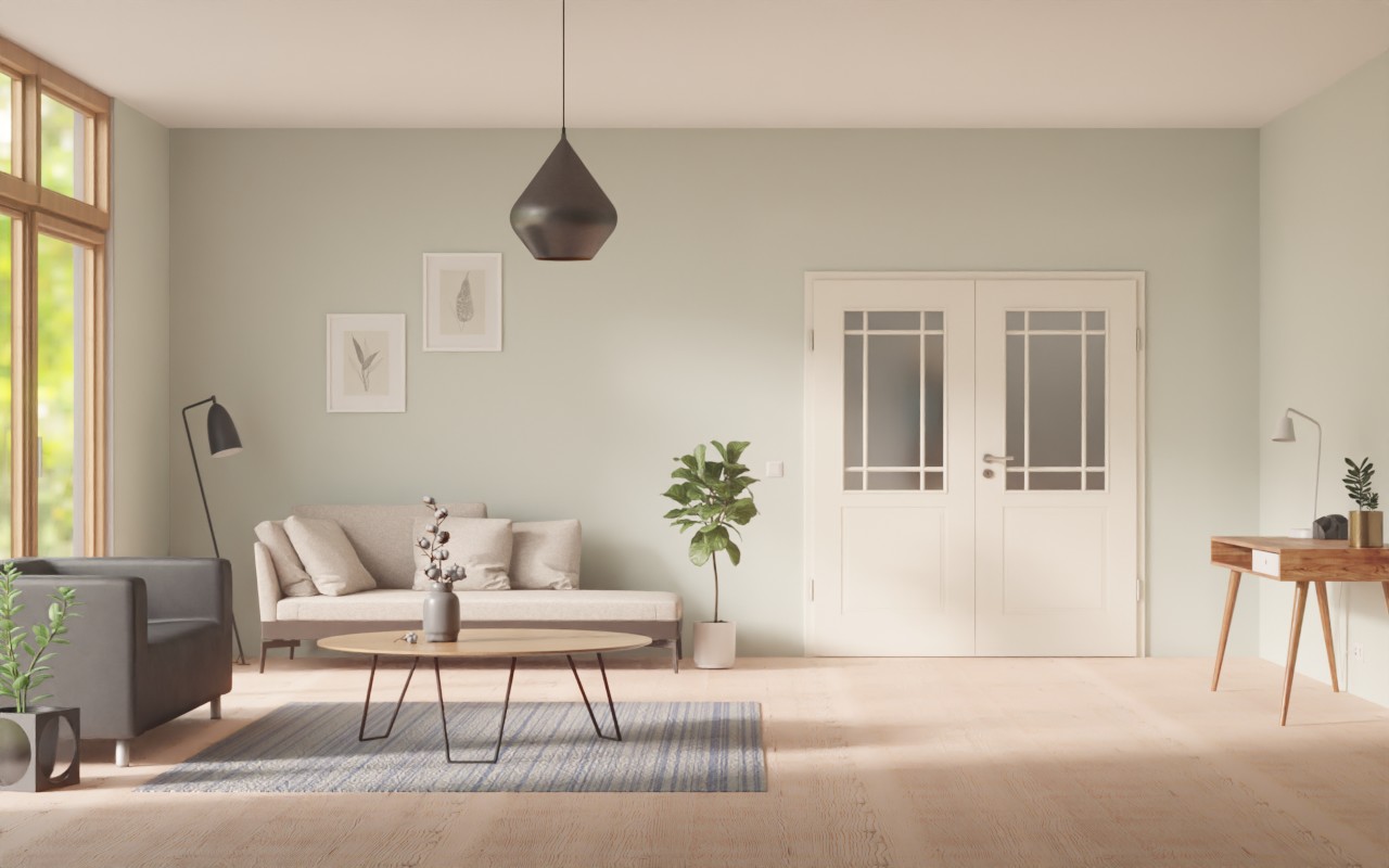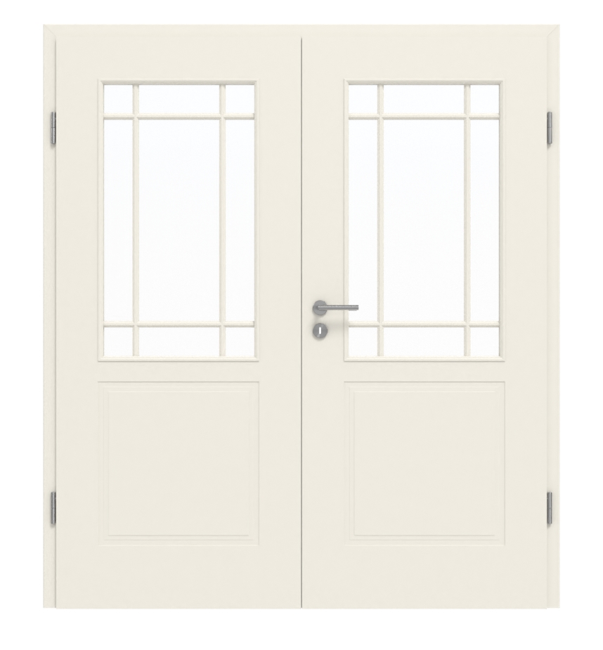 Ponadczasowy duet drzwi wewnętrznych w przyjaznym dla środowiska białym lakierze z dołączonymi w cenie ościeżnicami: