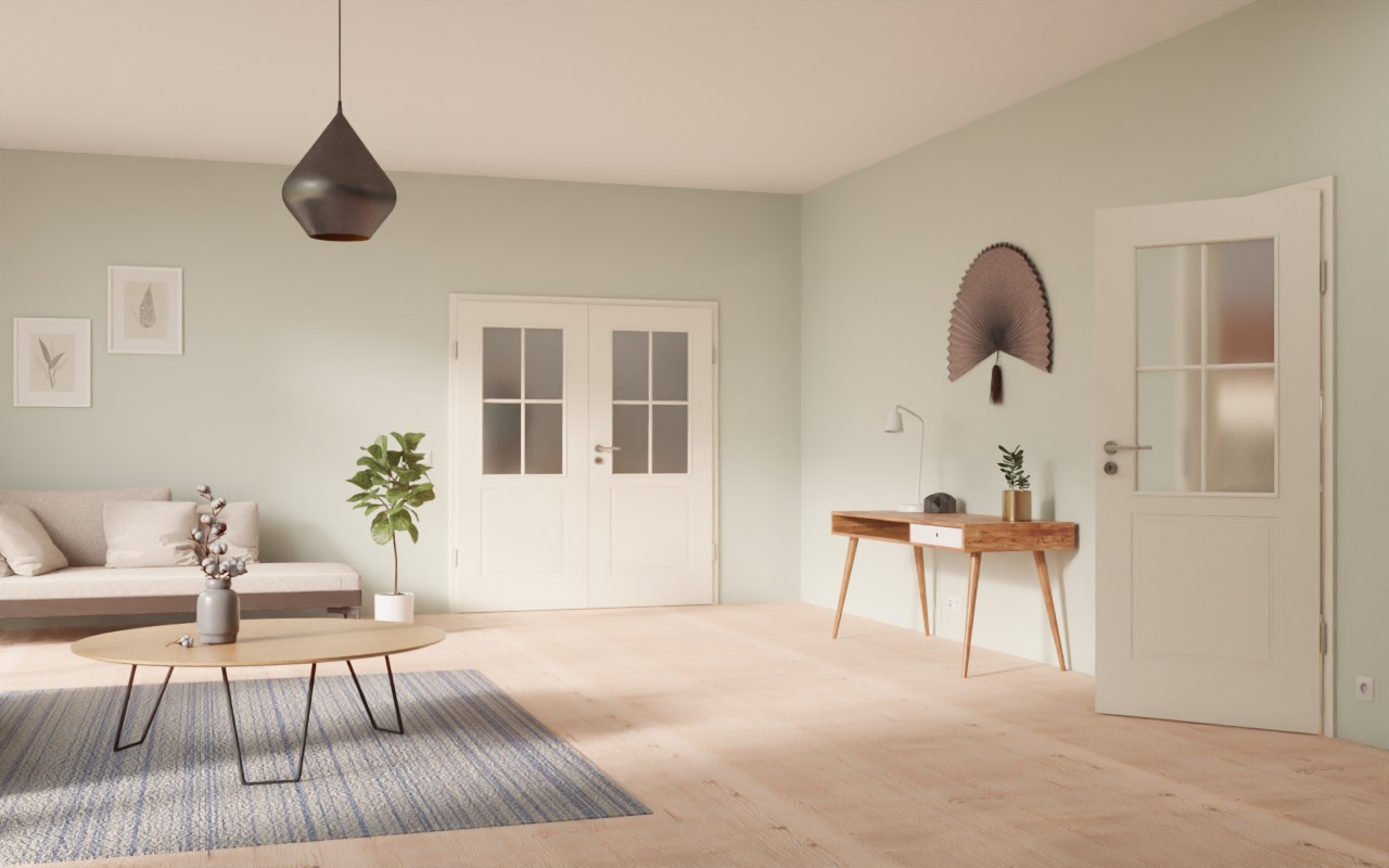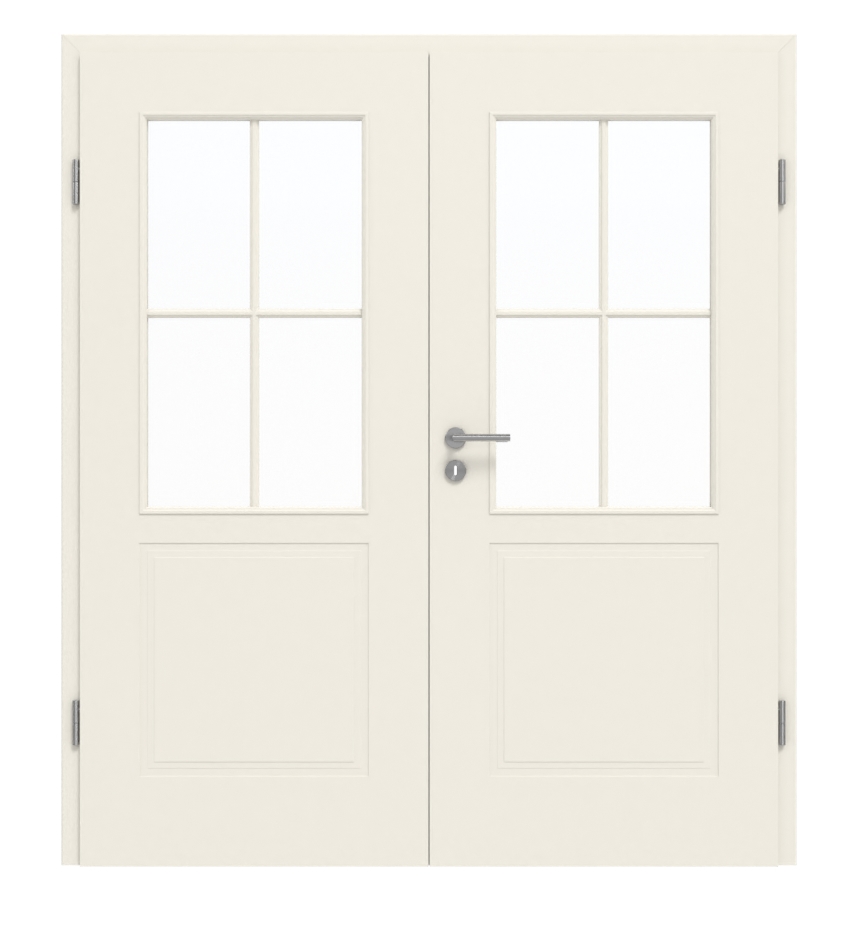 Zrównoważony duet drzwi wewnętrznych w sprawdzonej białej lakierze z dołączonym w cenie ościeżnicą: