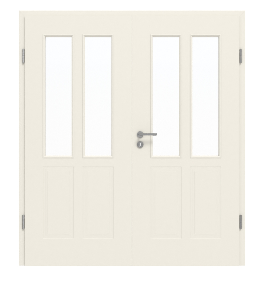 Atrakcyjna ościeżnica do dwuskrzydłowych drzwi wewnętrznych w kolorze biały lakier: