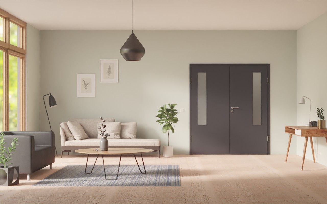 Nowoczesne drzwi wewnętrzne podwójne z matowym dekorem G-TEC: