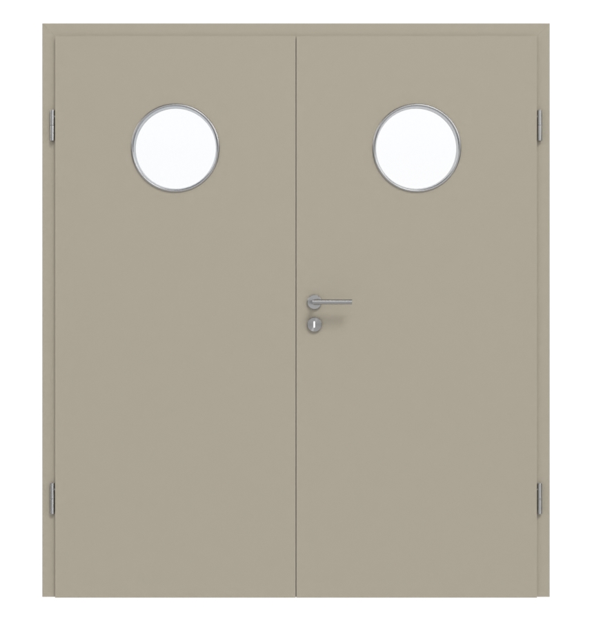 Dzięki rdzeniowi z litej płyty wiórowej te podwójne drzwi nadają się zarówno do pomieszczeń prywatnych, jak i biurowych. Drzwi zostały przetestowane w klasie obciążenia M. W zestawie znajdują się drzwi wraz z dopasowaną ościeżnicą, zawiasami i zamkiem z kluczem.