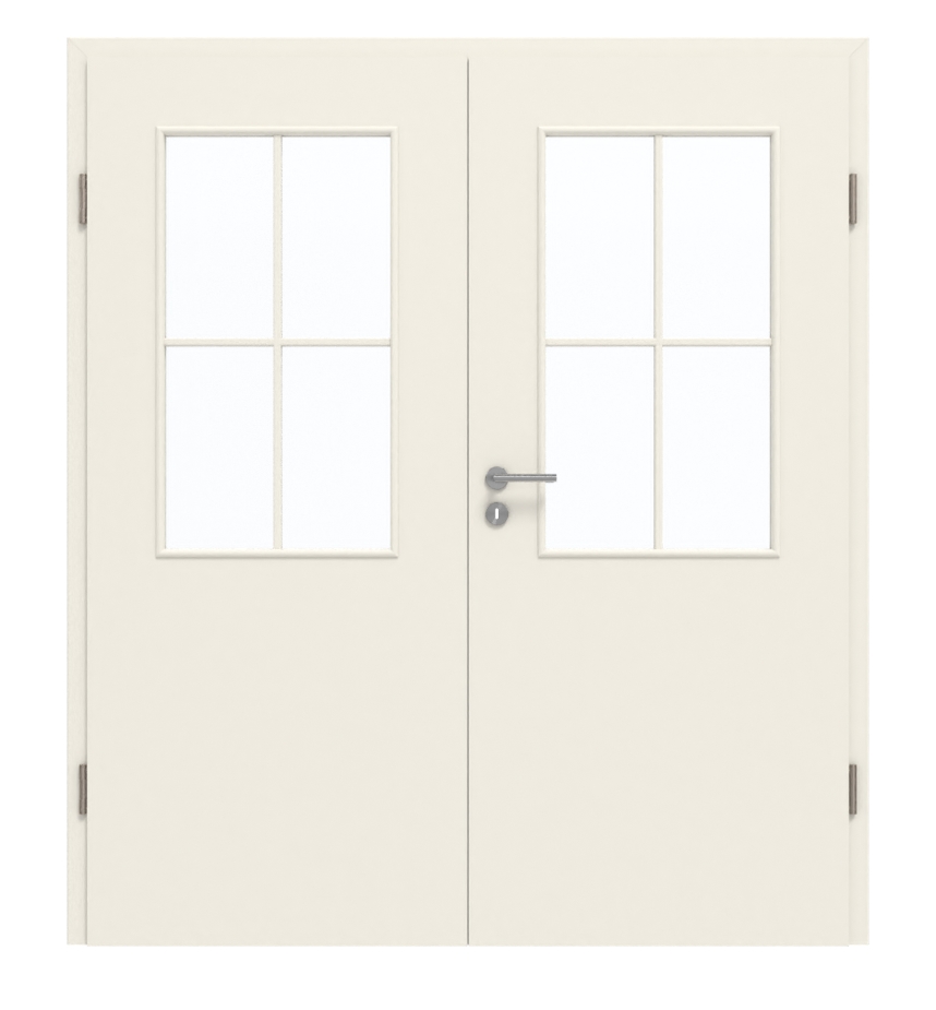 Stylowe dwuskrzydłowe drzwi wewnętrzne z jedwabiście matowym białym lakierem do użytku prywatnego lub biurowego: