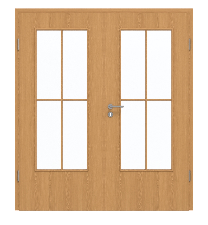 Dzięki rdzeniowi z pełnej płyty, podwójne drzwi skrzydłowe nadają się zarówno do pomieszczeń prywatnych, jak i biurowych. Zostały przetestowane w grupie obciążeniowej M. W cenie zawarte są oba skrzydła drzwiowe, ościeżnica, zawiasy oraz zamek wielozadaniowy.