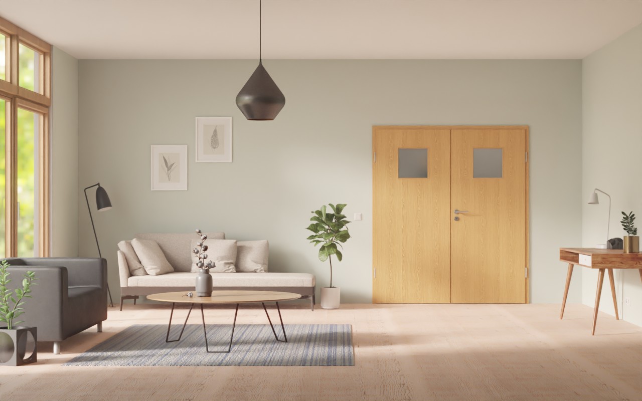 Atrakcyjne drzwi pokojowe podwójne z odporną na brud okleiną HPL: