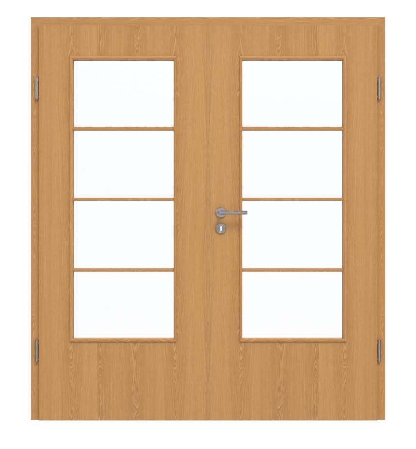 Rdzeń drzwi dwuskrzydłowych wykonany jest z płyty wiórowej. Produkt ten został przetestowany w klasie użytkowania M, dzięki czemu może być stosowany w pomieszczeniach prywatnych lub biurowych. Aby całość wyglądała estetycznie, cena obejmuje nie tylko skrzydła drzwiowe, ale także ościeżnicę, zawiasy oraz zamek z kluczem.