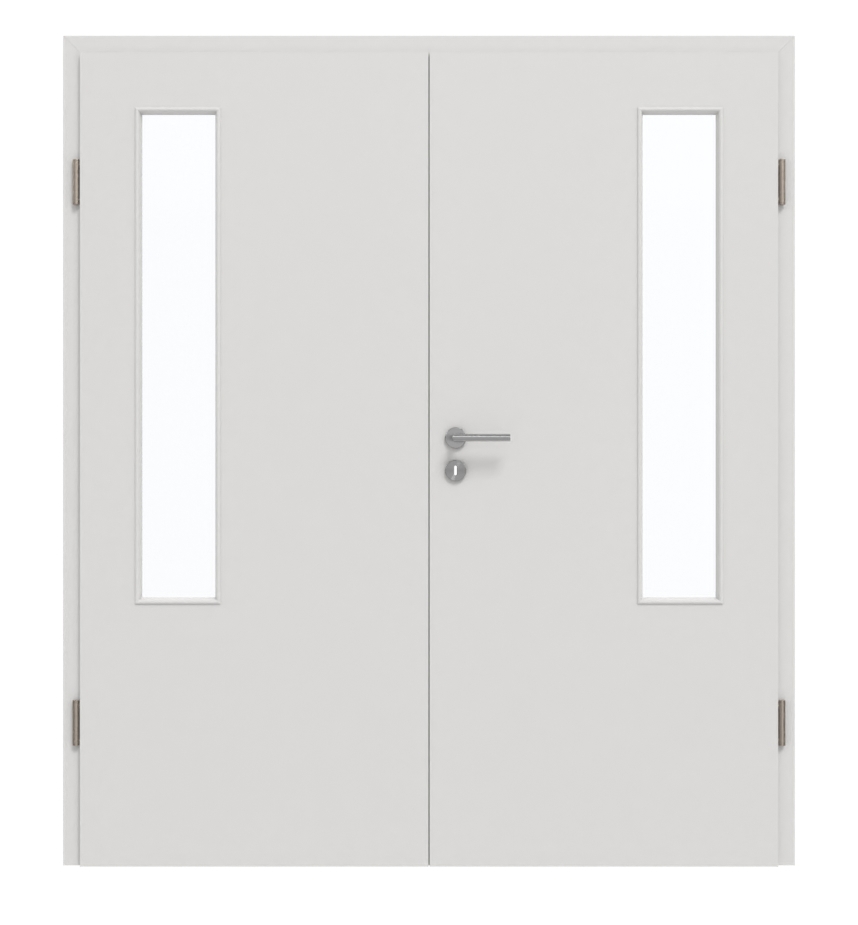 Drzwi dwuskrzydłowe mają środkową warstwę z płyty wiórowej. Posiada certyfikat klasy wytrzymałości M i jest przeznaczona do użytku w pomieszczeniach prywatnych lub biurowych. W cenie ościeżnica, zamek i zawiasy.
