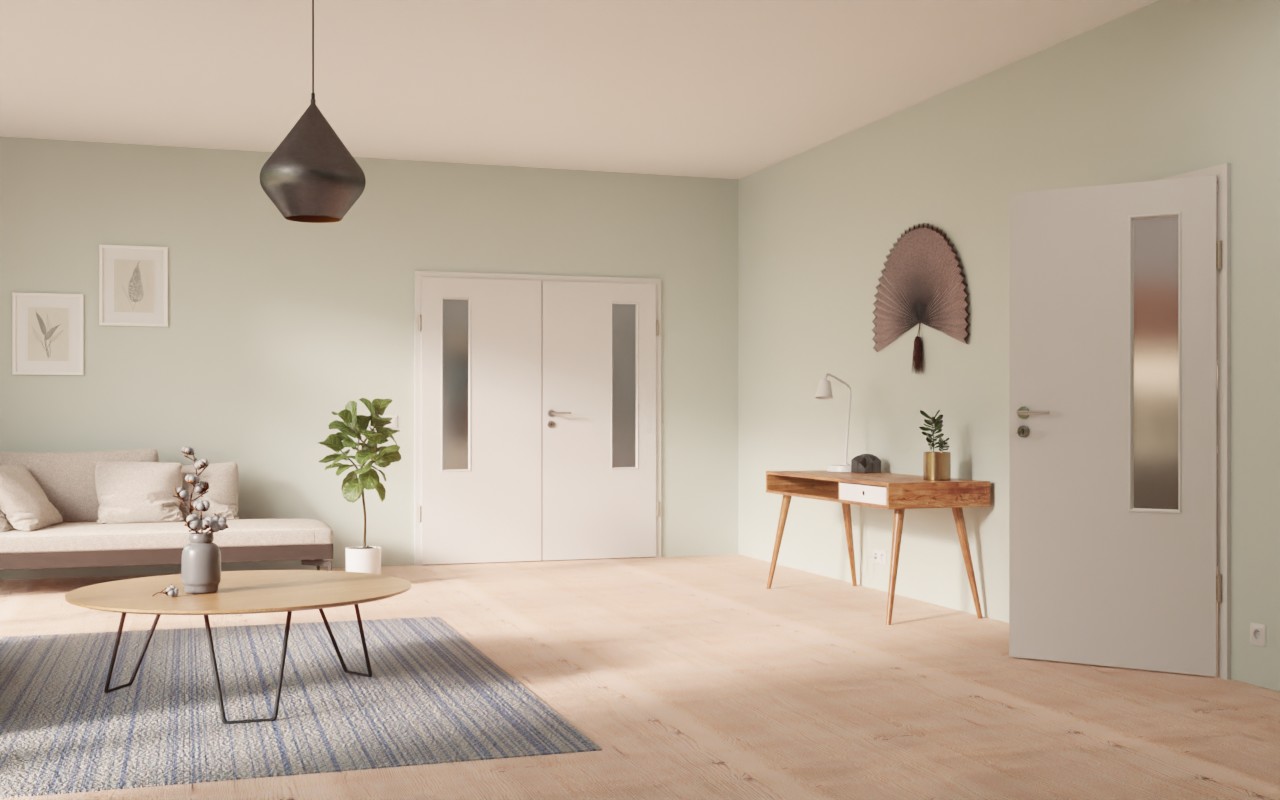 Ciesz się otwartymi, jasnymi pomieszczeniami dzięki drzwiom pokojowym podwójnym z pięknym wycięciem na szybę!