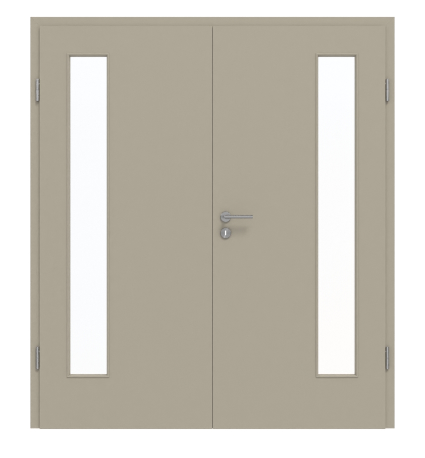 Stylowy element przyciągający wzrok: Dzięki swojemu przyjaznemu charakterowi drzwi dwuskrzydłowe LA-4 po stronie zawiasów w kolorze matowego szarego jedwabiu 7044 firmy Garant tworzą przyjazną atmosferę.