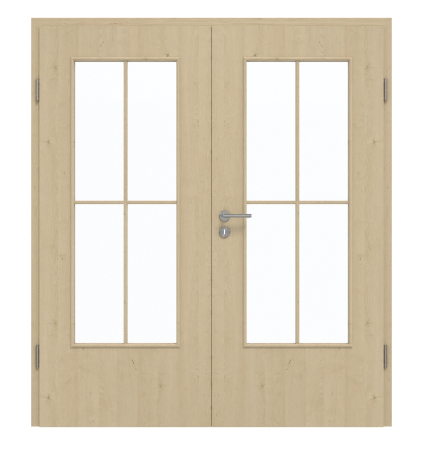 Eleganckie ramy z szprosami nadają dużym przeszkleniom subtelny akcent. Wzór Natura Klon zachwyca naturalnym wyglądem drewna o podłużnych słojach, charakteryzującym się jasnymi i delikatnymi wzorami. Solidna warstwa wierzchnia bez problemu wytrzymuje obciążenia mechaniczne. Ponadto można ją łatwo wyczyścić.