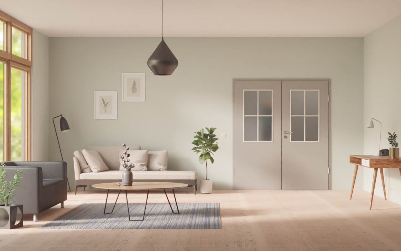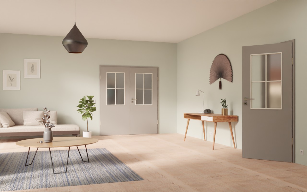 Stylowe drzwi podwójne z odporną na ścieranie warstwą HPL: