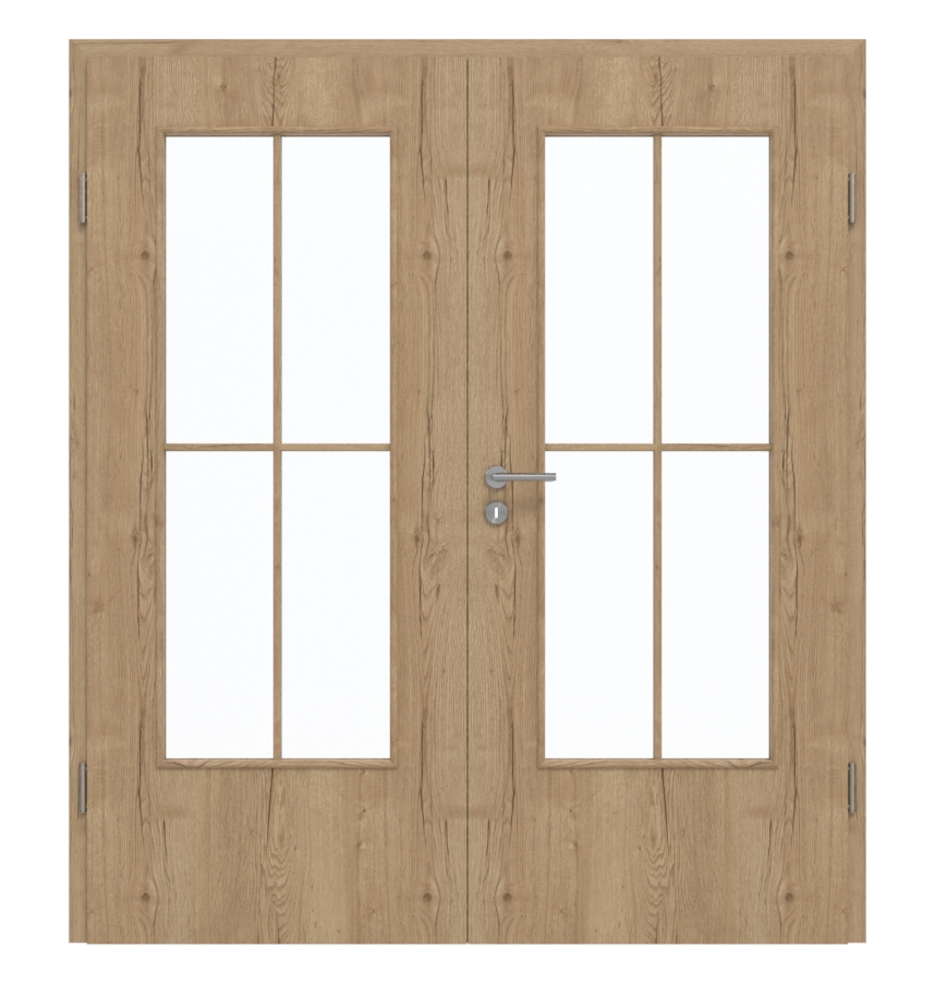 Rdzeń drzwi dwuskrzydłowych wykonany jest z płyty wiórowej. Produkt ten został przetestowany w klasie obciążenia M , dzięki czemu może być stosowany w pomieszczeniach prywatnych lub biurowych. Ościeżnica, zawiasy i zamek z kluczem są już wliczone w cenę.