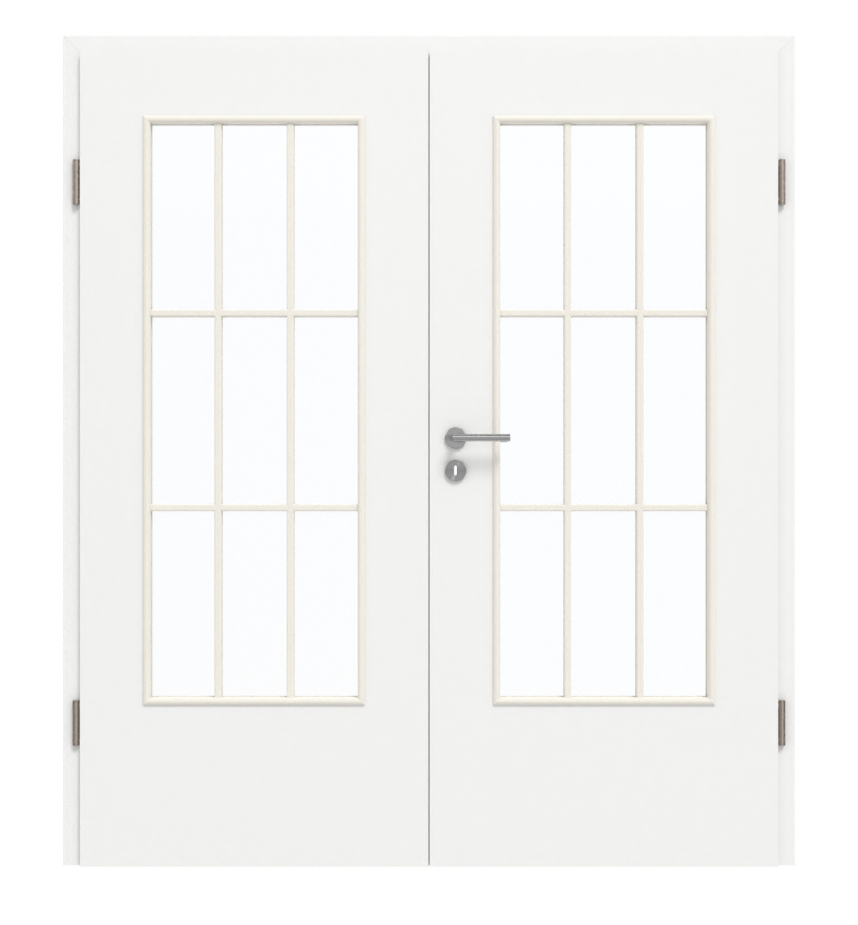 Dzięki eleganckim ramom z szprosami w każdym wycięciu szklanym powstaje dziewięć równych pól. Jasny szarotka oraz jednolite, delikatne ziarno nadają drzwiom wewnętrznym atrakcyjny wygląd. Zarysowania i uderzenia nie stanowią problemu dla wytrzymałej warstwy wierzchniej z HPL. Ponadto jest bardzo łatwa w czyszczeniu.