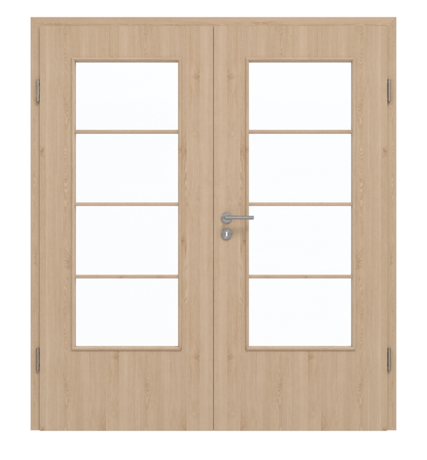 Trzy pionowe szprosy dzielą równomiernie dwa duże przeszklenia. Drobne usłojenia tworzą przyjemny dla oka wzór naturalnego dekoru drewna Authentic Achat DA. Ponadto łatwa w pielęgnacji laminowana powierzchnia charakteryzuje się wysoką odpornością na zarysowania i ścieranie.