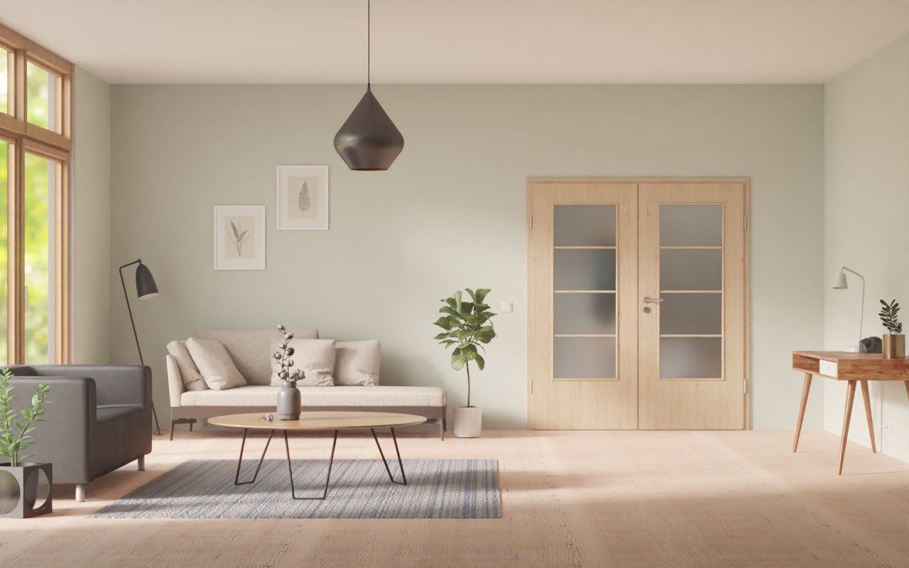 Atrakcyjna podwójna wewnętrzna drzwi z powierzchnią odporną na zarysowania CePaL: