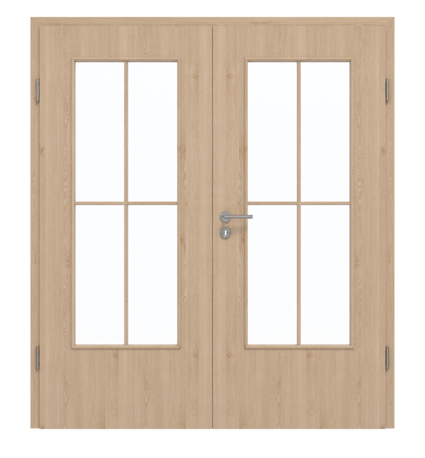 Prosta rama szprosowa dzieli wycięcia na szybę na cztery równe prostokąty. Spokojne usłojenia i jasne odcienie drewna nadają dekorowi Authentic Achat DA niezwykle realistyczny wygląd. Ta łatwa w pielęgnacji warstwa wierzchnia przekonuje również wysoką odpornością na ścieranie i uderzenia.