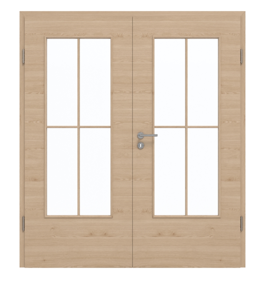 Dzięki warstwie środkowej z płyty wiórowej oraz certyfikacji w grupie obciążeniowej M te dwuskrzydłowe drzwi nadają się zarówno do użytku prywatnego, jak i biurowego. Aby całość wyglądała estetycznie, cena obejmuje nie tylko skrzydła drzwiowe, ale także ościeżnicę, zawiasy oraz zamek z kluczem.
