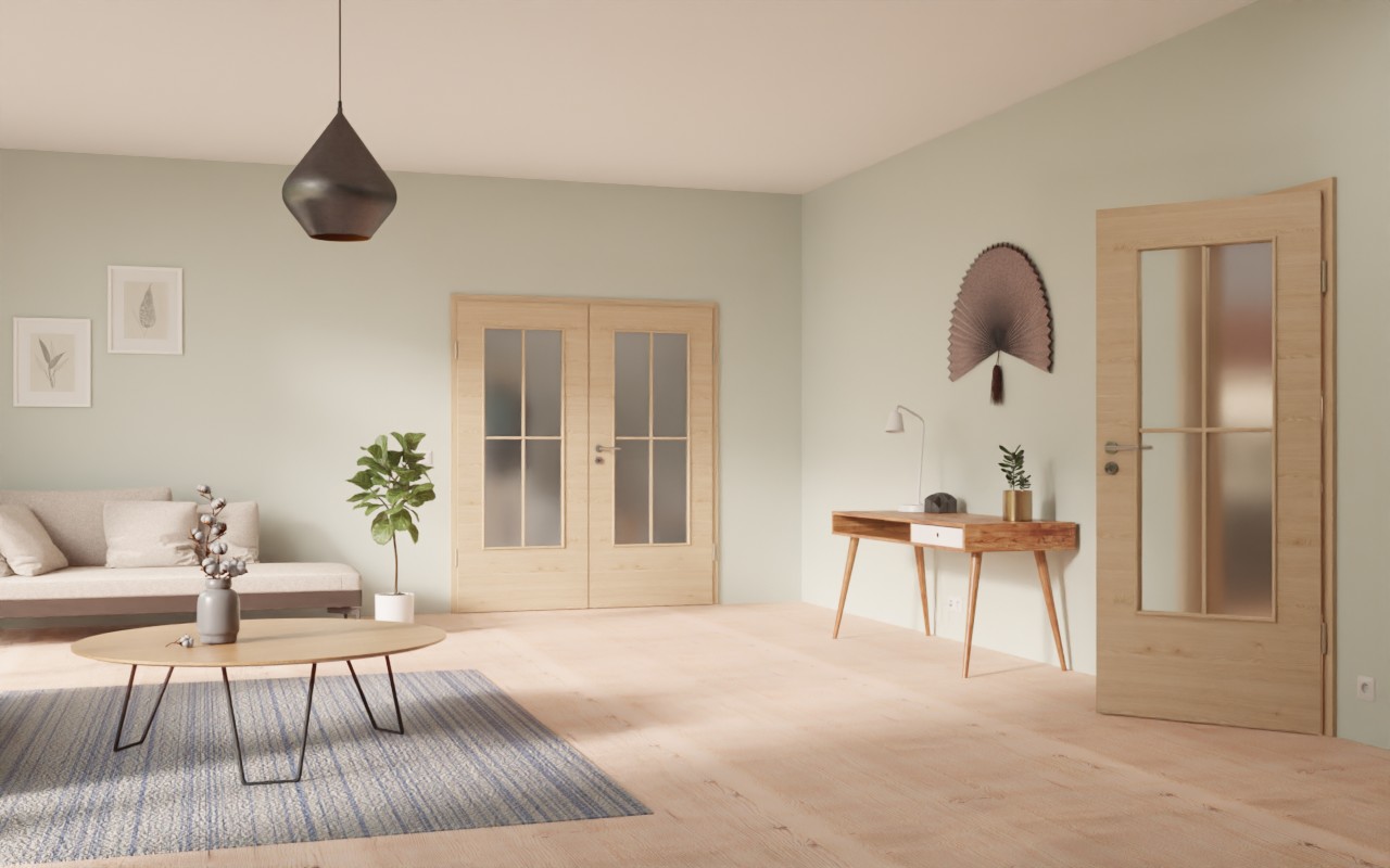 Prostokątne przeszklenia zajmują większość powierzchni skrzydeł drzwi, zapewniając w ten sposób przyjemny dopływ światła. Delikatne, naszywane szprychy nadają im piękną symetrię. Delikatne usłojenia w układzie poprzecznym nadają dekorowi Authentic Achat DQ realistyczny wygląd drewna. Zarysowania i uderzenia nie stanowią większego problemu dla tej wytrzymałej warstwy wierzchniej. Ponadto jest bardzo łatwa w czyszczeniu.