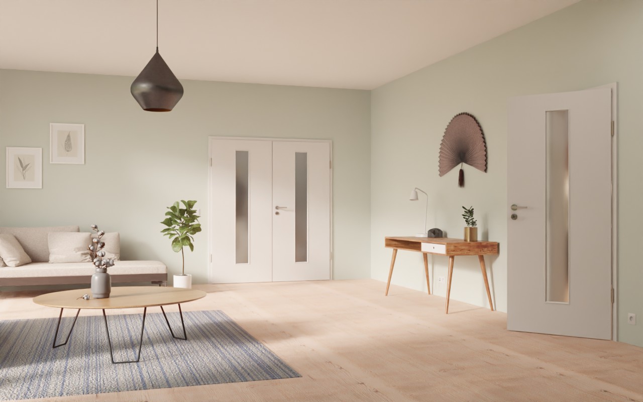 Skrzydła drzwi zdobią pośrodku smukłe szklane wstawki. Dzięki powierzchni CePaL Silver Grey drzwi zyskują nowoczesne wykończenie wizualne dzięki eleganckiemu odcieniu szarości i błyszczącym właściwościom. Warstwa wierzchnia wykazuje się wyjątkową odpornością na ścieranie i uderzenia. Ponadto jest odporna na światło i łatwa do czyszczenia.