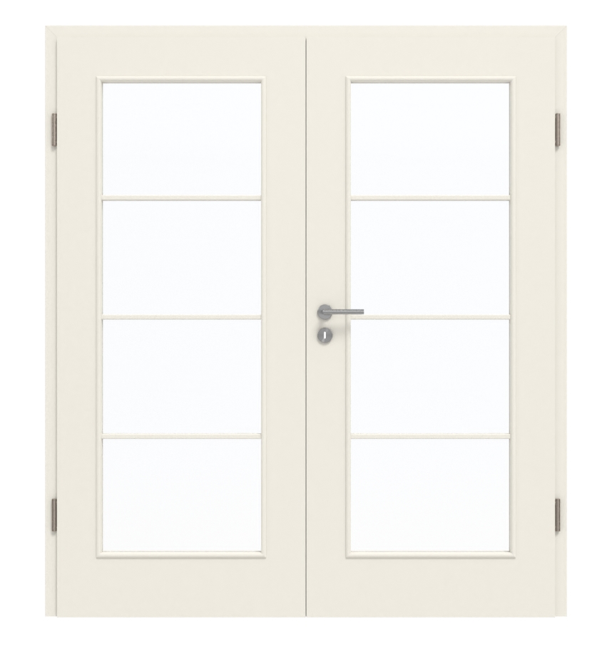 Dzięki dużym otworom okiennym jasność dociera nawet do pomieszczeń bez okien. Trzy poziome szprosy nadają szybie nowoczesny wygląd. Powierzchnia zachwyca świeżym i przyjaznym wyglądem, który przypomina stylowy wygląd w białym lakierze 9010 . Ponadto warstwa wierzchnia z HPL jest łatwa w pielęgnacji oraz odporna na zarysowania, uderzenia i ścieranie.